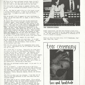 JY: I think that it is great. Especially the young musical group; it has a very distinguished character. There are many artists who I really love. The Japanese noise/industrial scene is very positive. Null, Hijo Kaidan, Merzbow, Hanatarash, and we have appeared on so many stages. Especially Kazayuki K. Null has many projects (Null, ANP, Zeni Geva, Geva-Geva, YBO²…). However, there are some artists who are autistic and stand isolated in Japan. I personally enjoy having a show very much, and if there is any possibility, I am willing to have more.