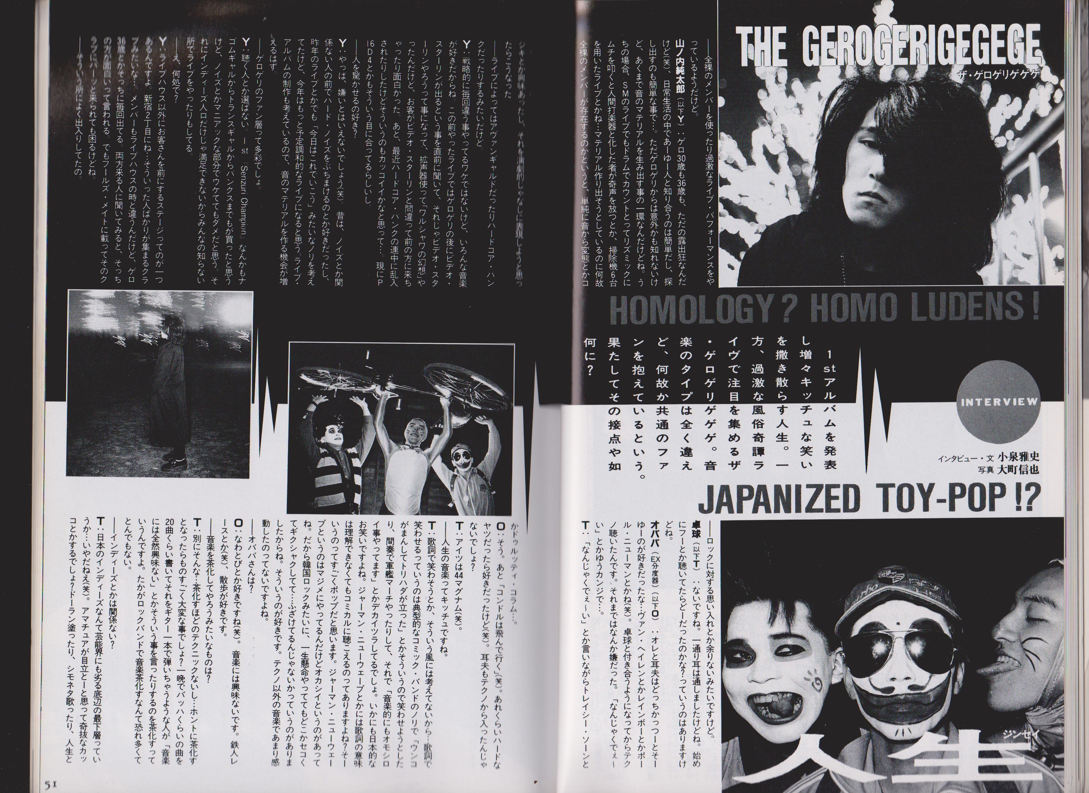 As you can see it’s a split interview between Zin-Säy! and The Gerogerigegege. I don’t have anything to say, besides that I’ve included a live report from the same issue including a photo of The Geros. Is that a girl or Juntaro in tights?